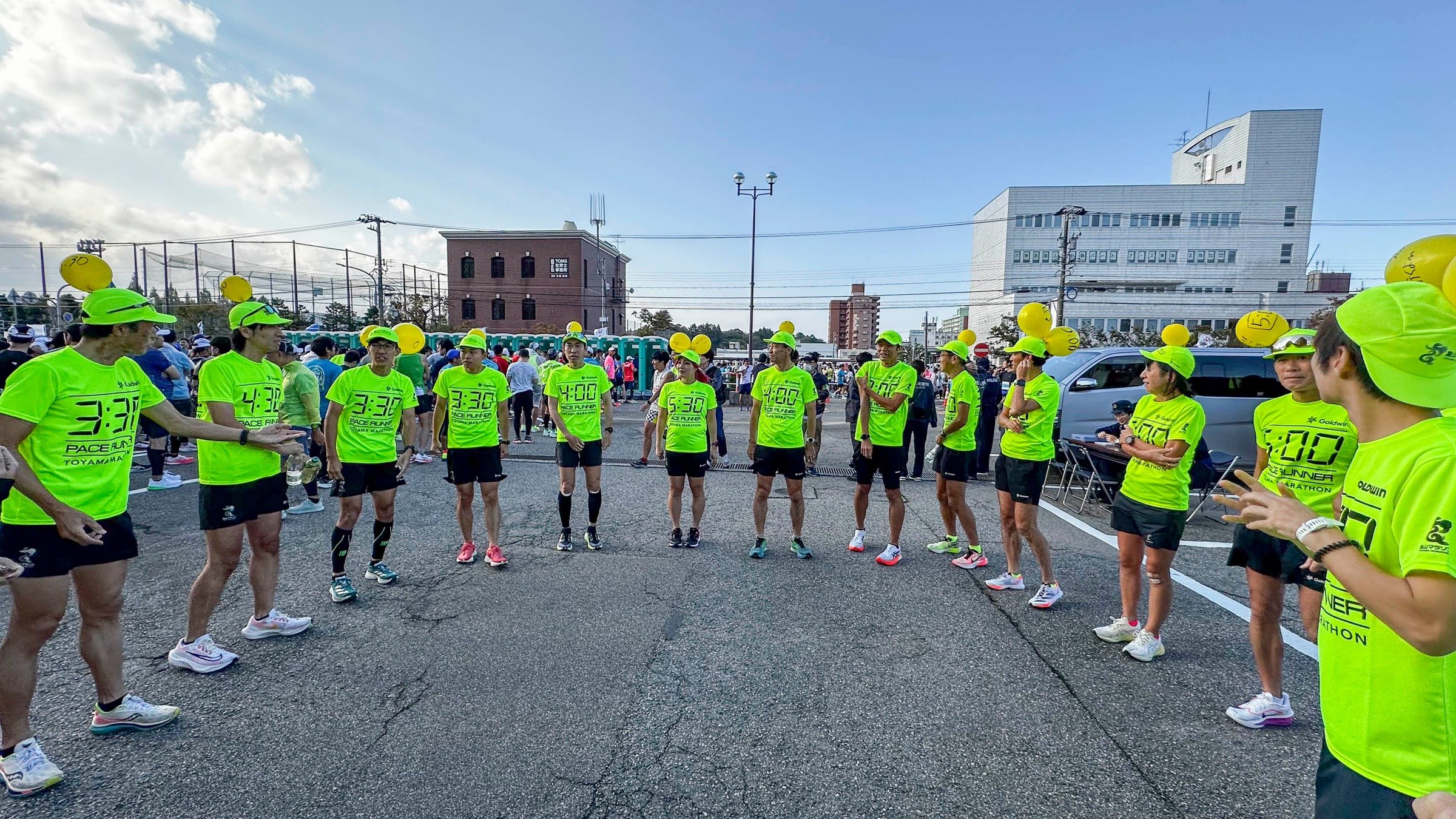 富山マラソン2025が無事終了致しました。今回も3時間から6時間30分までの目標タイムを目指す参加者の方が1人でも多く達成できるよう、25名がペースランナーを務めさせていただきました。